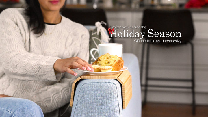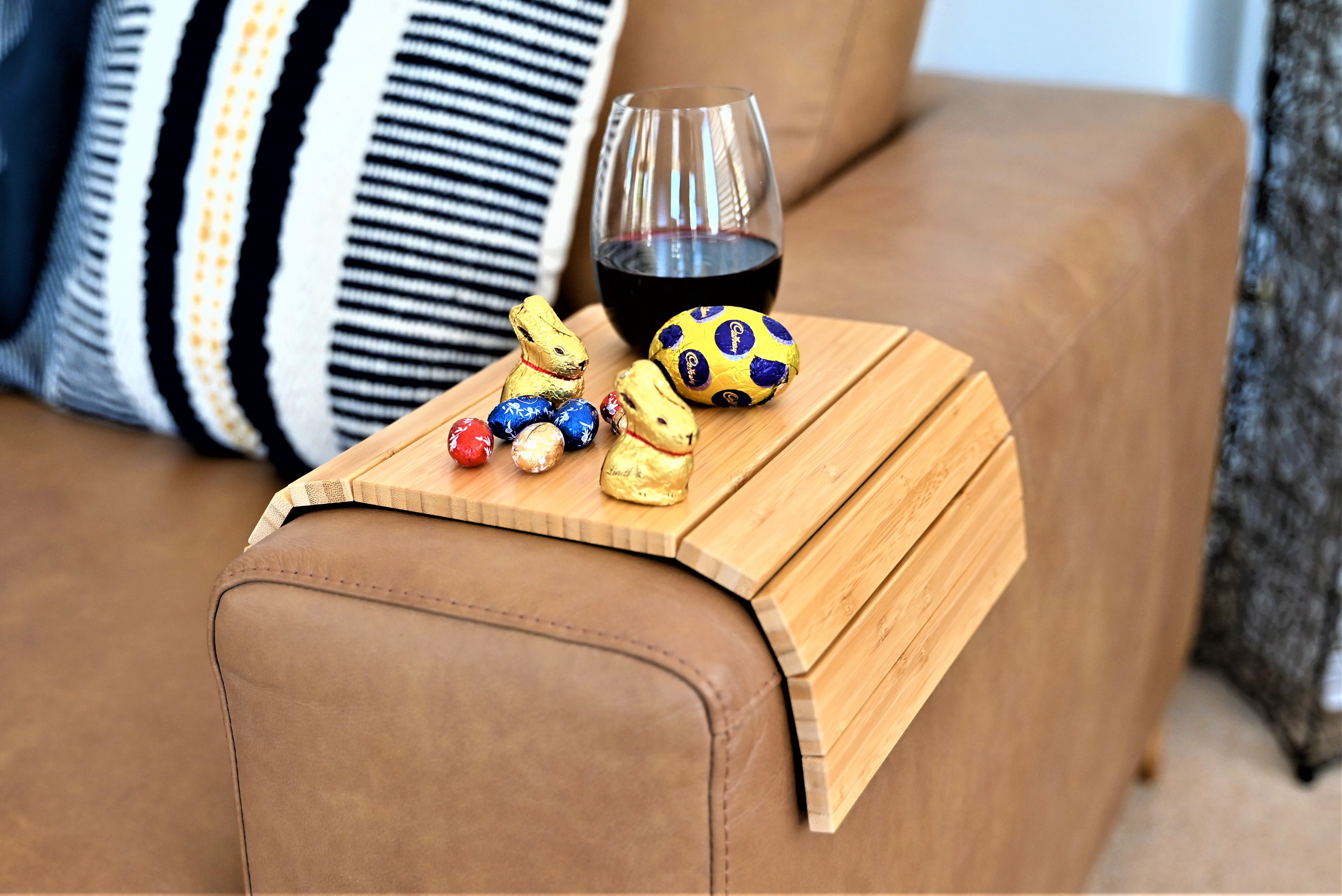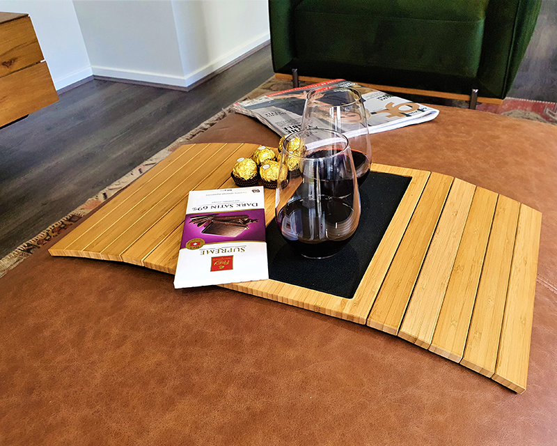 Sometimes the standard Slinky doesn't work for your furniture style. The Large Slinky Sofa Table is the perfect fit for any couch, chaise or ottoman and sits on the cushion right beside you. Crafted from durable, lightweight Bamboo & felt backing to protect your furniture, it offers a stable, scratch-resistant surface ideal for holding drinks, snacks, or decorative items.